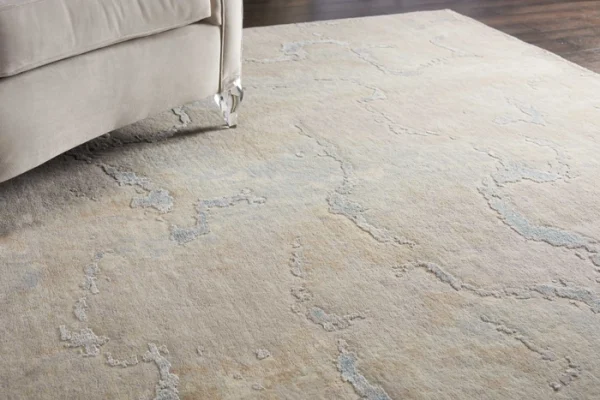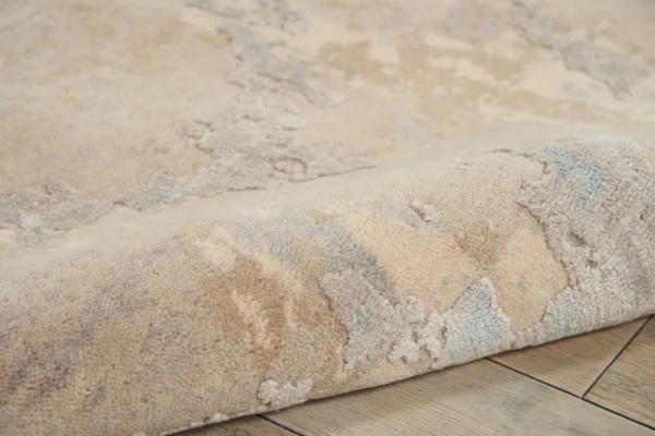 Soft neutral tones seem to flow across the surface of this wool and silk rug, creating a feeling of peaceful movement.