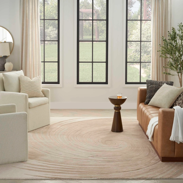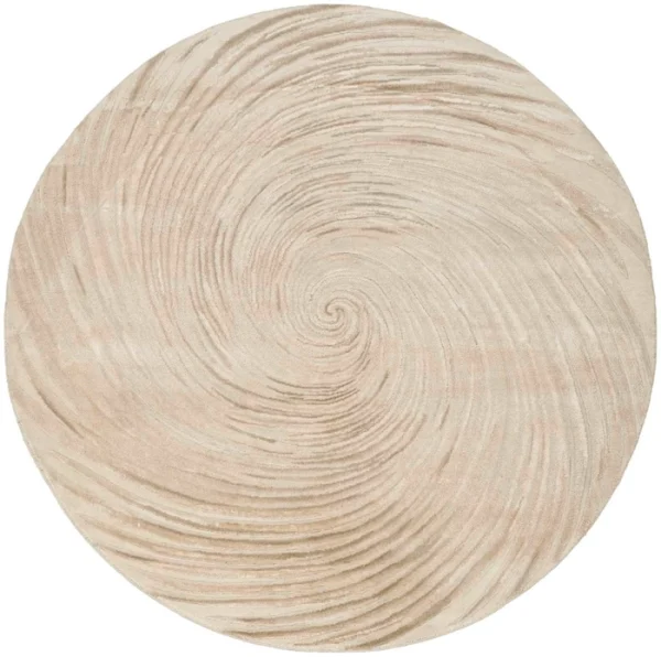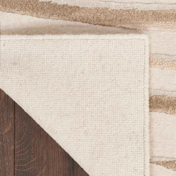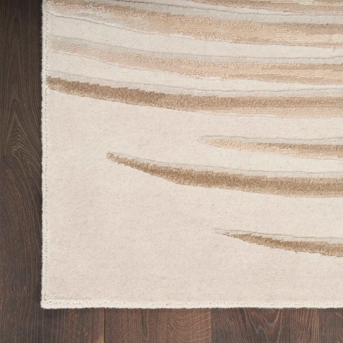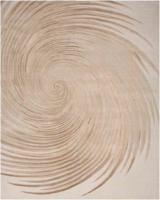 Experience the captivating charm of this abstract Christopher Guy rug. Soothing shades of beige, ivory, and sand form an enchanting pattern, which is enhanced by subtle carving that adds movement and definition. This hand-knotted rug is made from a luxurious blend of New Zealand wool and silk for lasting comfort and elegance.