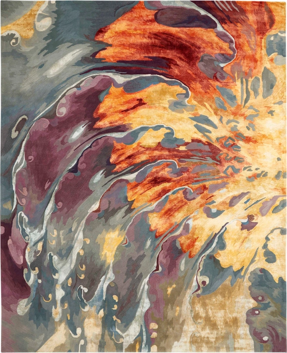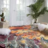 Attention-grabbing shades of fiery orange, crimson and purple, offset by smoky charcoal and white, impart an added element of excitement to a sensational swirling, modern design. Hand tufted from a magnificent wool blend and accentuated by glimmering silken highlights, this scene-stealing Prismatic area rug from Nourison is certain to turn heads and inspire conversation.