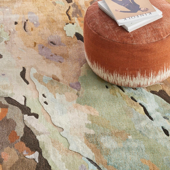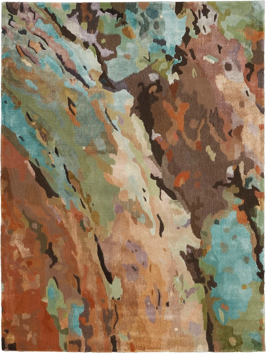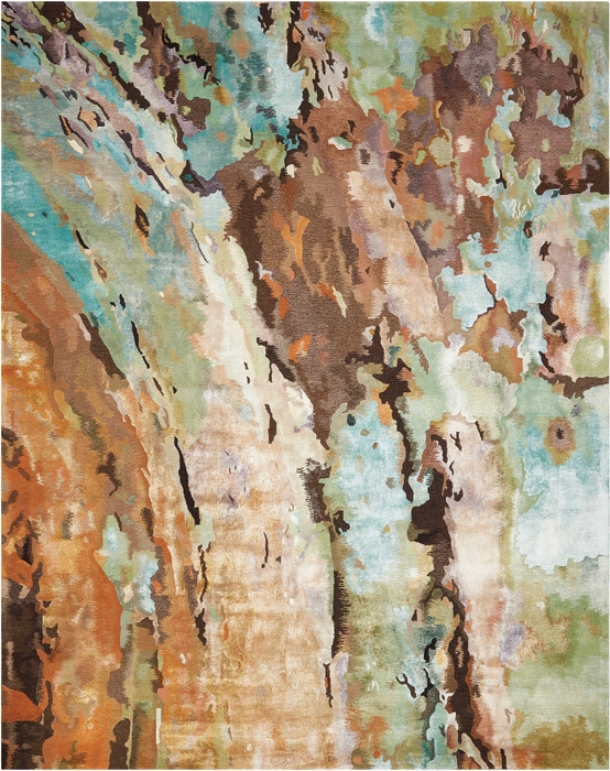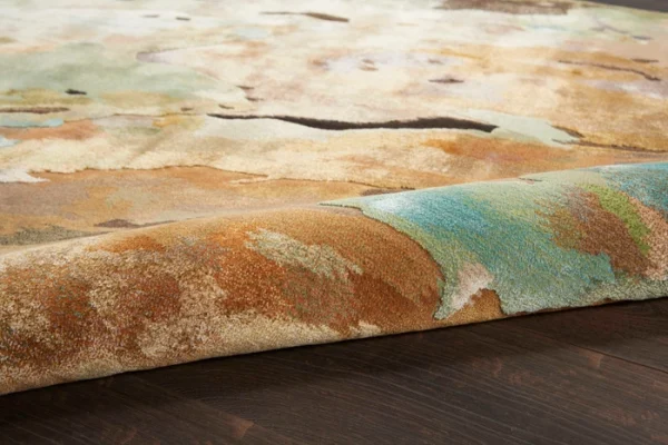 In natural tones of green, turquoise, brown and sepia, an earthy dynamic design flows with a quiet energy to create a style statement that is both striking and serene. Woven with softly shining threads and hand tufted from a luxurious wool blend, this Prismatic area rug from Nourison thrills with both its tone and texture.