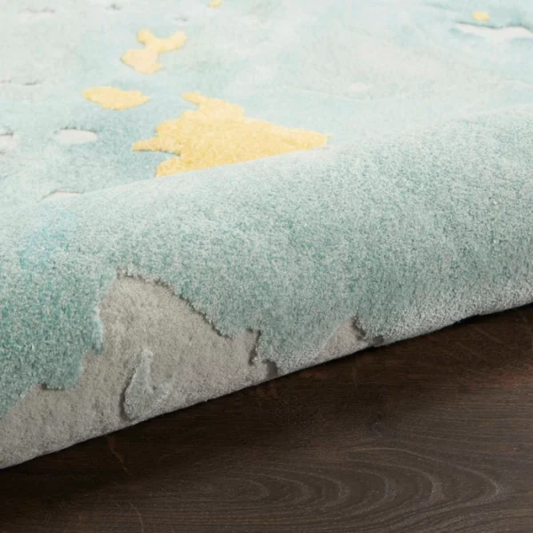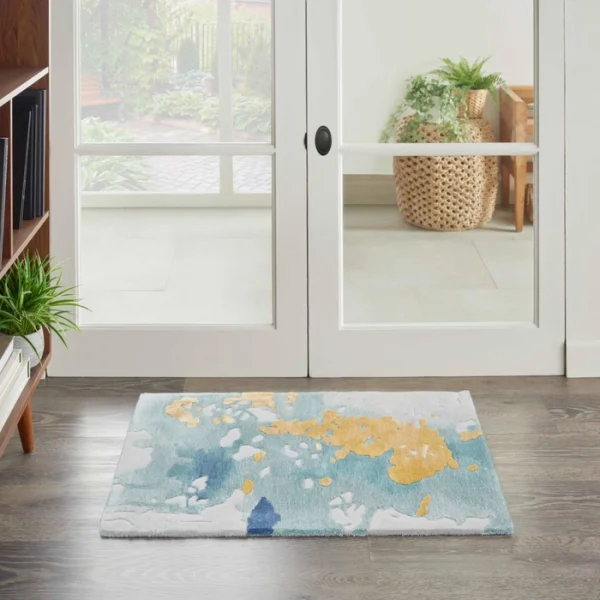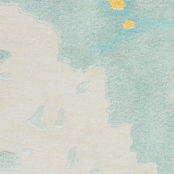 Bring a sense of movement to your floors with this abstract rug from the Prismatic Collection. Its softly hued ground is layered with hand carved, multi-toned blues and splashes of yellow that add a unique dimensional effect to your living room or bedroom. Handmade from a blend of premium New Zealand wool and silk-like Luxcelleâ„¢ that feels amazingly soft underfoot.