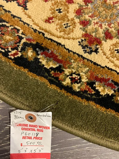 This is a beautiful machine made rug made in Turkey.The material is Polypropylene, polyester and Jute pile. The color is Black/Red. The size is 5’ 3” x 5’ 3”. The shipping is within mainland USA. Outside of USA please inquire about shipping before purchasing this rug.