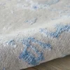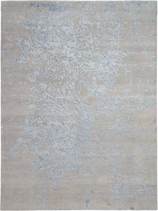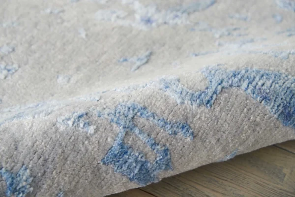A subtle yet surprisingly complex design plays out in the frosty blue and grey colors of this Silk Shadows Collection runner rug. Hand knotted from New Zealand wool and silk-like bamboo fibers, the silky high-low pile and softly striated colors inspire images of the glittering beauty of a winter landscape.