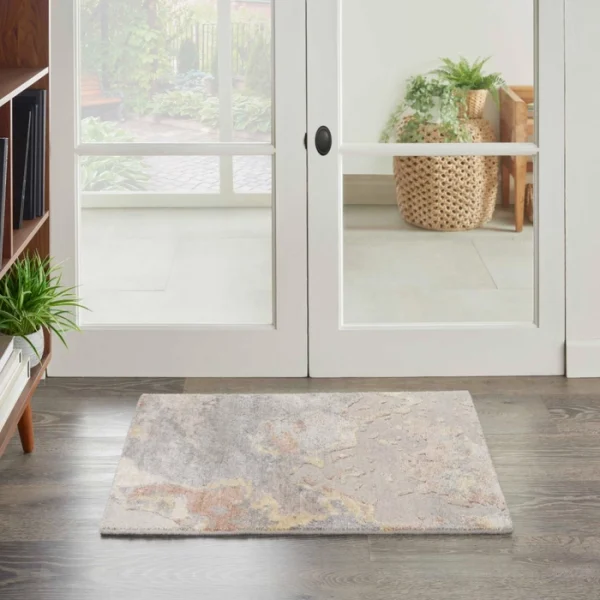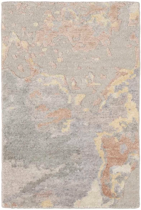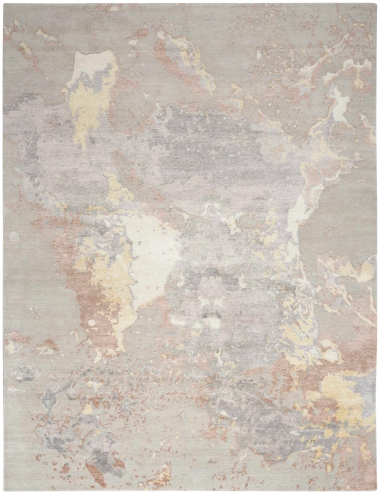 In a gorgeous interpretation of modern impressionist design, this Silk Shadows rug presents an abstract free-form design in dramatic shades of grey, gold, brown, and ivory. Hand-knotted from a premium blend of New Zealand wool and silk-like bamboo fibers, with carved accents that add a subtle layer of dimension.