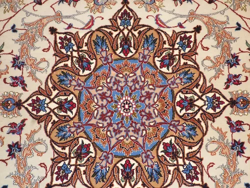 Here is an Isfahan very fine hand knotted rug. It is signed by famous weaver EMADI. The size is 5′ 9″ X 3′ 8″ . The material is wool and silk on Silk Foundation. The colors are grey background. The shipping is for USA mainland. Outside of USA please inquire about shipping before purchasing this rug.