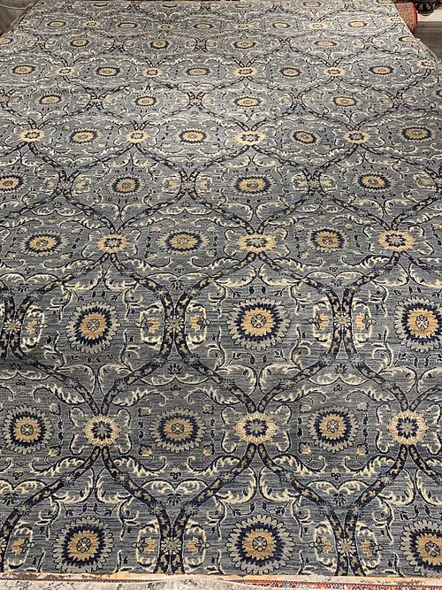 Here we are offering a beautiful over size hand knotted 100% wool pile. It is made in India. The size is 18’ 3” x 12’.