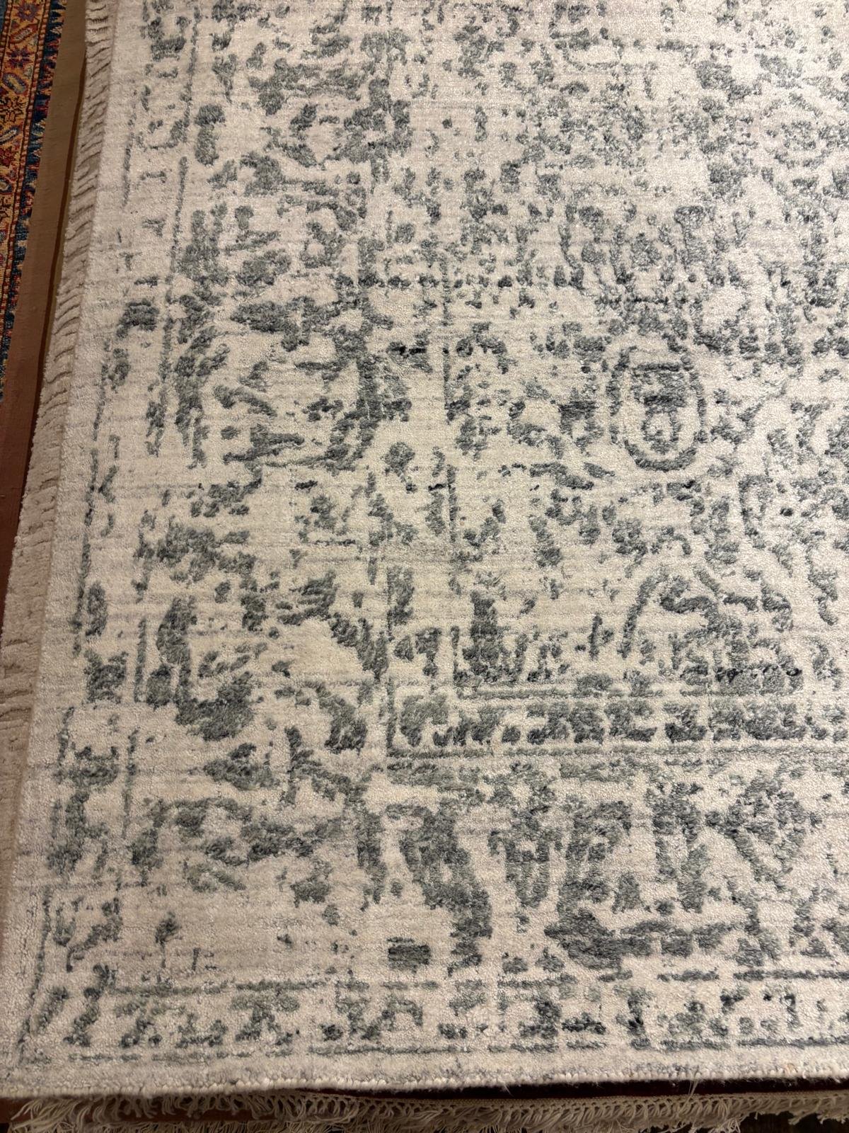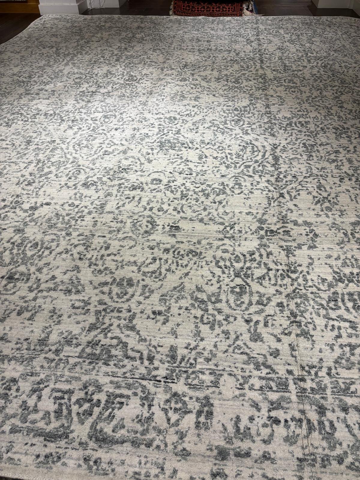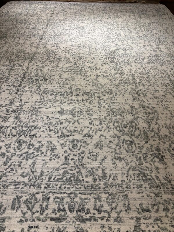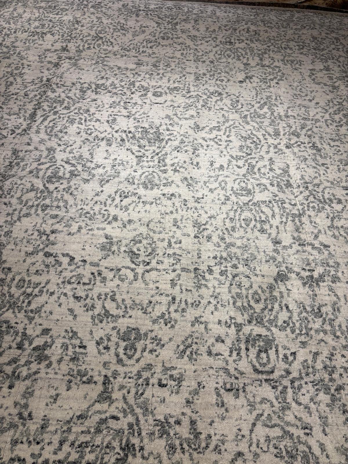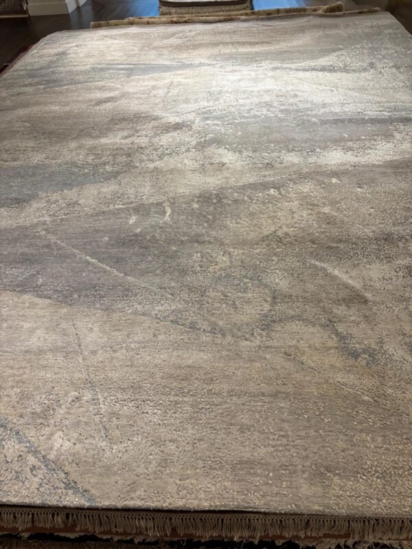 Here we are offering a very beautiful authentic handloomed wool and viscose rug made in India. The colors are beige and ivory and ivory. The size is 12 x 15