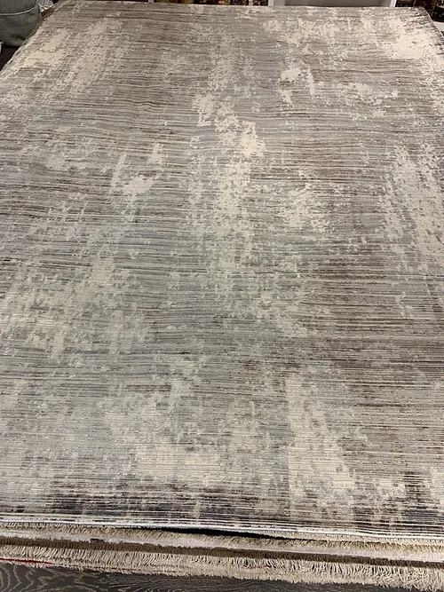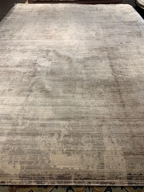 This is a machine made rug made in Turkey. The material is viscose. The size is 9’ 10” x 13’ 9”. The color is Light gray with touch of light brown. The shipping is for mainland USA. Outside of USA please inquire about shipping before purchasing this rug.