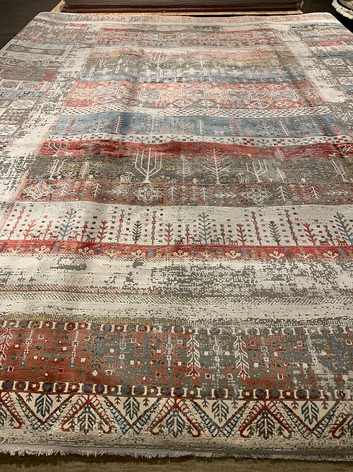 Here we are offering a very nice machine made knotted rug modern design Artos (ART013). The material is 55% Viscose 45% Acrylic. The country of origin is Turkey.