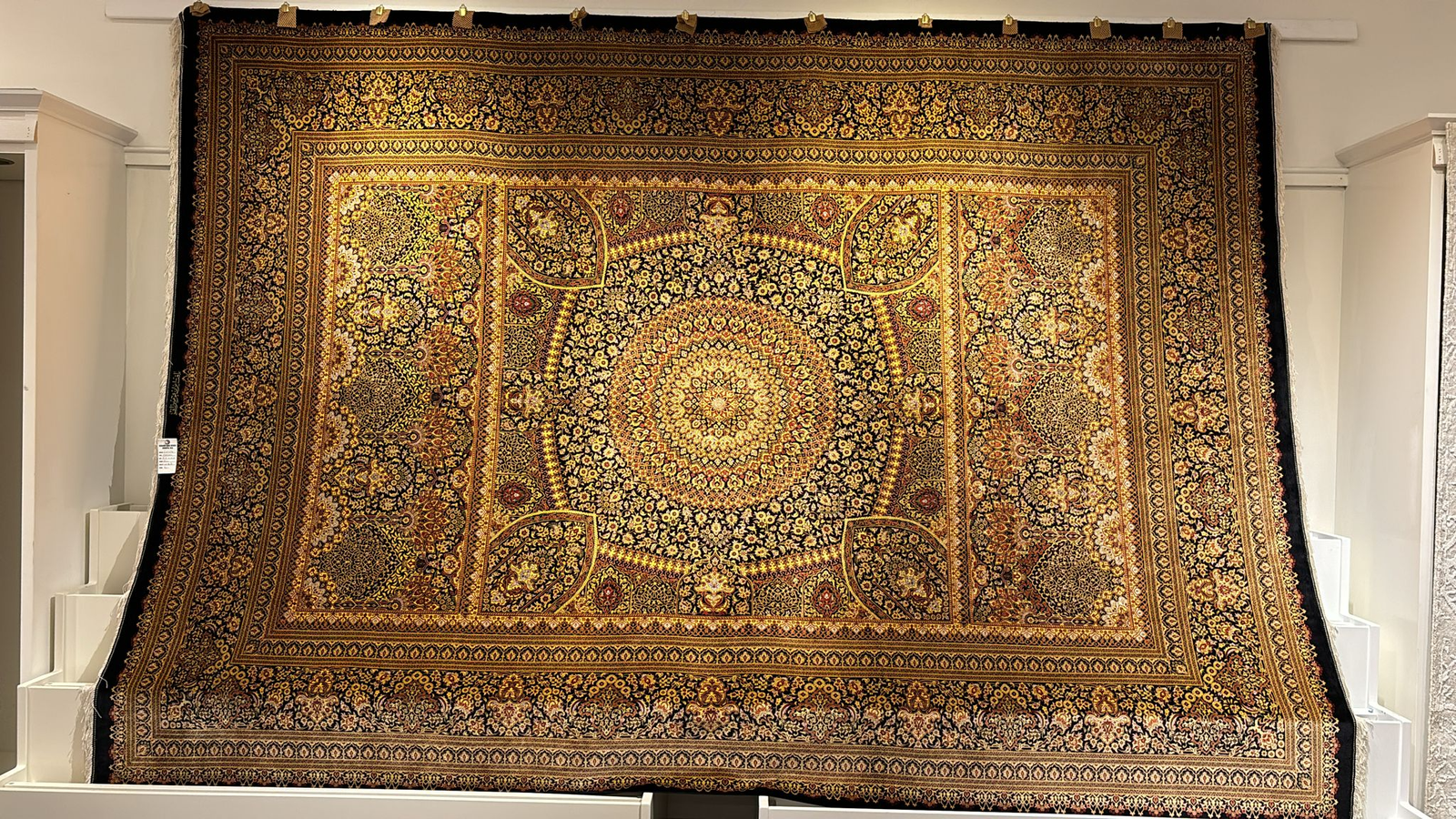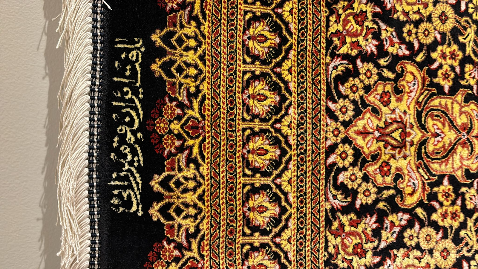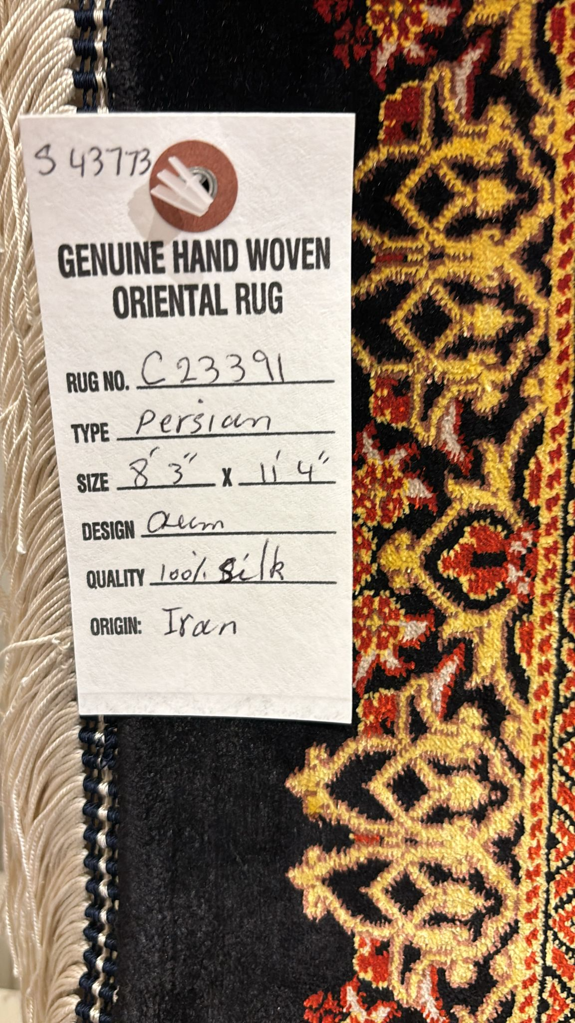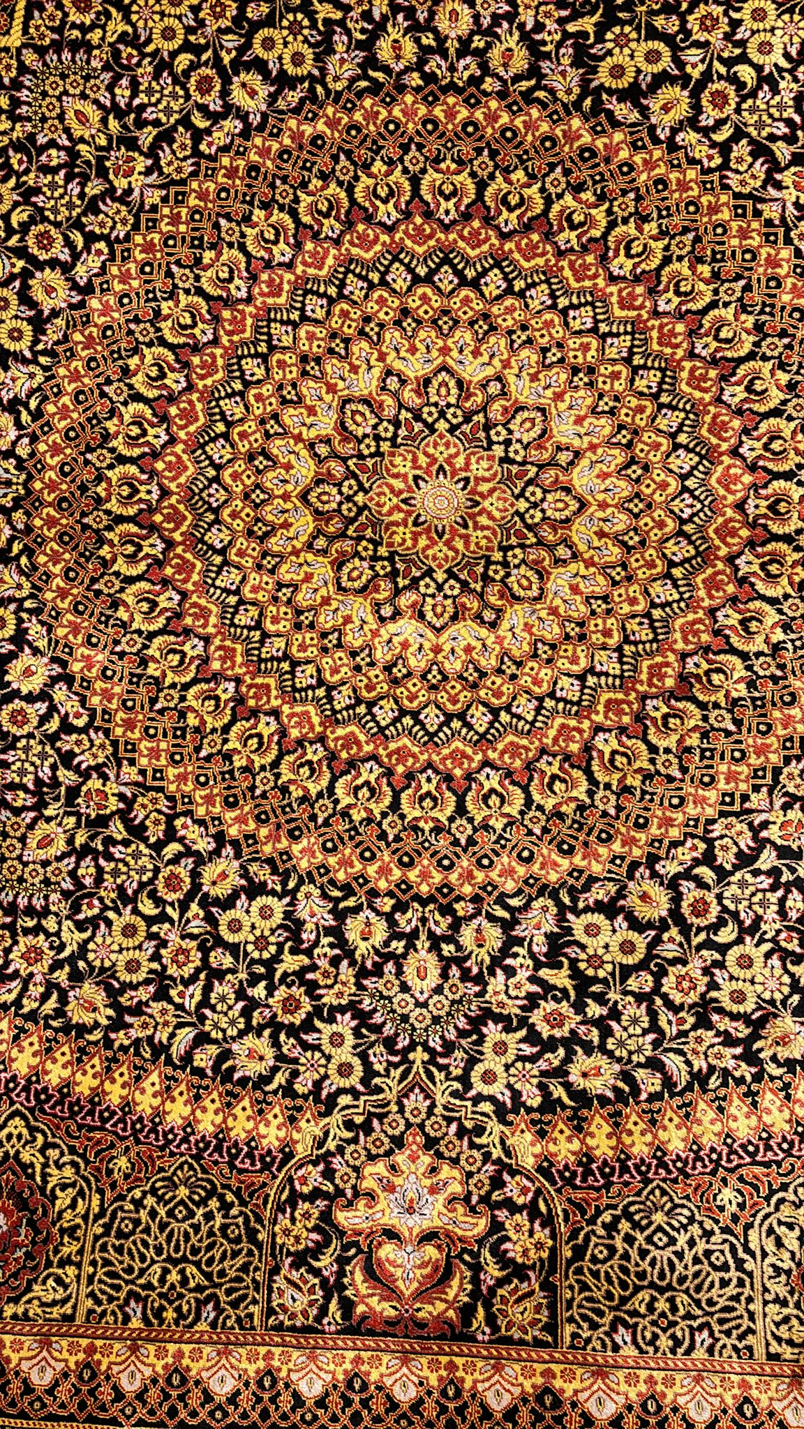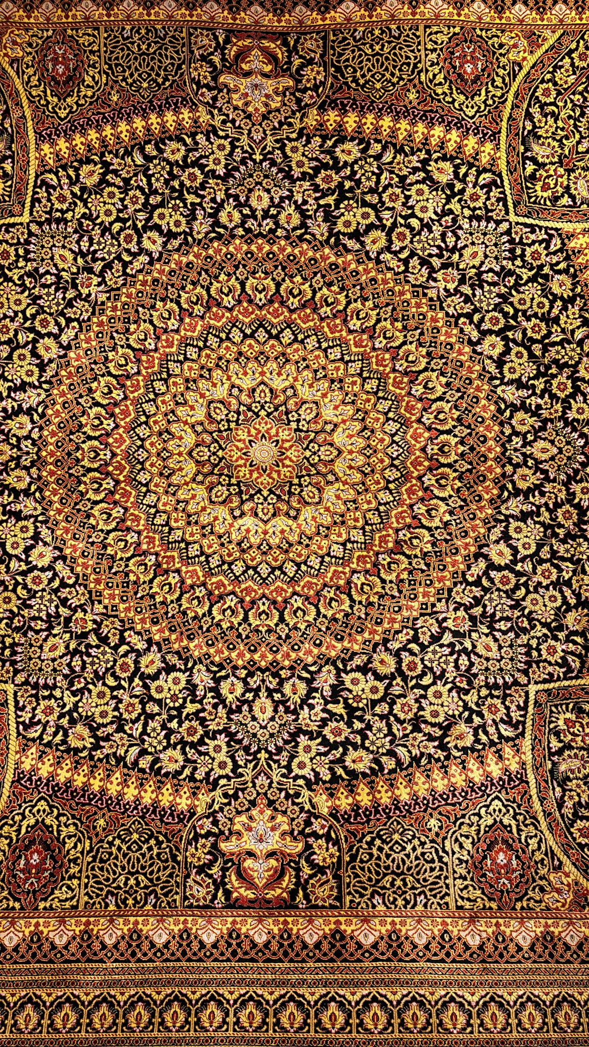 [10:58 pm, 17/09/2024] Saba Rugs: Here we are offering a beautiful hand knotted 100% pure natural silk made in Iran. The colors are black, Gold, red, and gray.