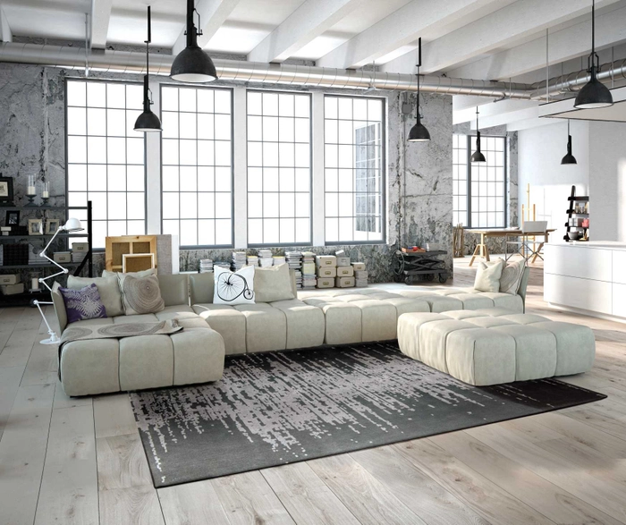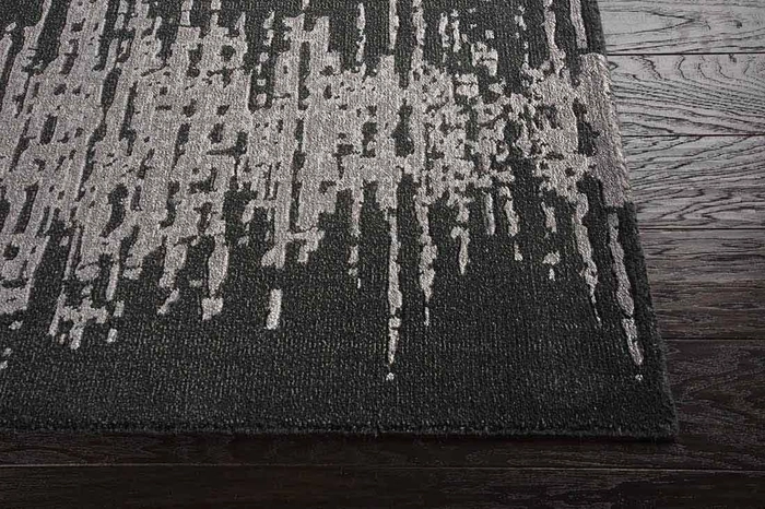 A strong abstract design has a digitized feel that gives this superbly modernist rug an ultra-contemporary edge. Profoundly handsome in darkly luminous tones of flint on charcoal. Bring dramatic impact to your room with this centerpiece textile.